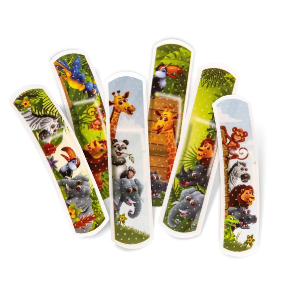Pleistrų rinkinys vaikams su ryškių spalvų su nuotaikingais žvėrelių piešiniais. Elastinis porėtas tvarsčio pagrindas apsaugo žaizdos vietą nuo vandens ir nešvarumų. Spalvotas pleistro paviršius su piešiniais pakelia nuotaką ir atitraukia vaiko dėmesį nuo liūdnos situacijos. Su neprilimpančiu prie žaizdos tvarstuku centrinėje pleistro dalyje.