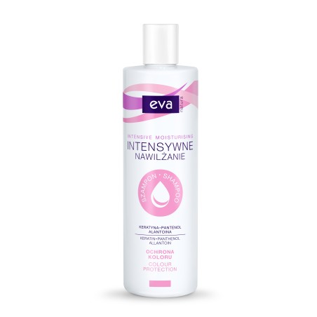 EVA NATURA drėkinantis, spalvą saugantis šampūnas dažytiems plaukams su keratinu, pantenoliu ir alantoinu. Veiksmingai apsaugo dažytų plaukų spalvą nuo blukimo, suteikia natūralų blizgesį.