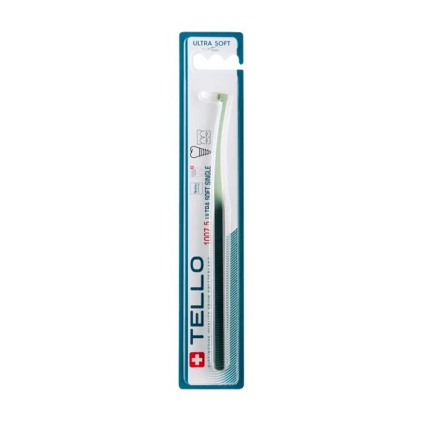 Tello 1007.5 vieno danties šepetėlis – itin švelnus, be priekaištų šalinantis susidariusias apnašas ergonomiškos rankenėlės pagalba.