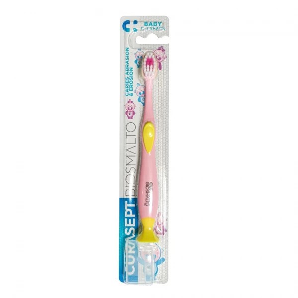 Vaikiškas dantų šepetėlis CURASEPT Biosmalto Baby 0-3 m., rožinės spalvos,1 vnt.