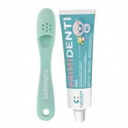 Rinkinys skirtas pirmojo dantų dygimo metu suteikti greitą pagalbą kūdikiui. Rinkinį sudaro 20 ml "Primi Denti" gelis ir 1 vnt. Curasept masažuojamasis dantenų šepetėlis.