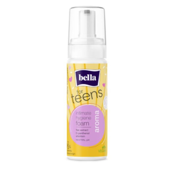 „Bella for Teens Aroma“ subtilaus malonaus kvapo intymios higienos putos su linų sėmenų biokompleksu, D-pantenoliu ir alantoinu pasižymi raminamuoju, švelninamuoju ir drėkinamuoju poveikiu. Putos apsaugo intymios zonos odą ir gleivines nuo išsausėjimo, pašalina diskomforto pojūtį. Neutralus pH neturi neigiamo poveikio mergaičių ir jaunų moterų makšties bakterinei florai. Sudėtyje yra 95 % natūralios kilmės ingredientų. Dermatologų patikrinta, tinka ir jautriai odai.