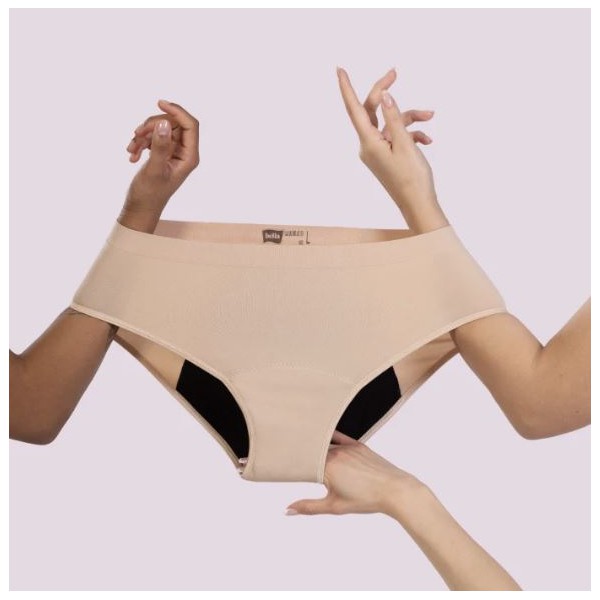 Diskretiškos, elastingos, patogios, daugkartinės sugeriančios kelnaitės menstruaciniam laikotarpiui.
