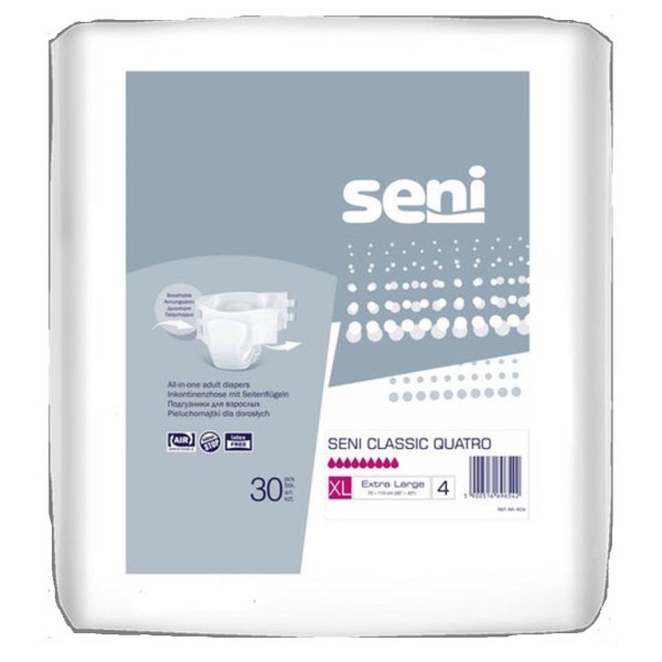 | Anatominės sauskelnės pagal sugeriamą tūrį daugiau kaip 2500 ml | SENI Classic Quatro XL 30 vnt. (TZMO SA) | 9006155 |