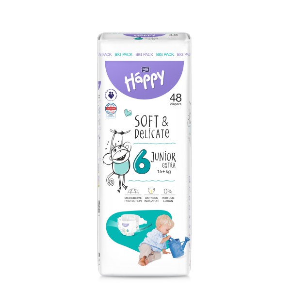 | Sauskelnės vaikams, sveriantiems nuo 19 kg iki 27 kg | HAPPY Junior Extra 48,15+kg 48 vnt. (TZMO SA) | 9006200 |